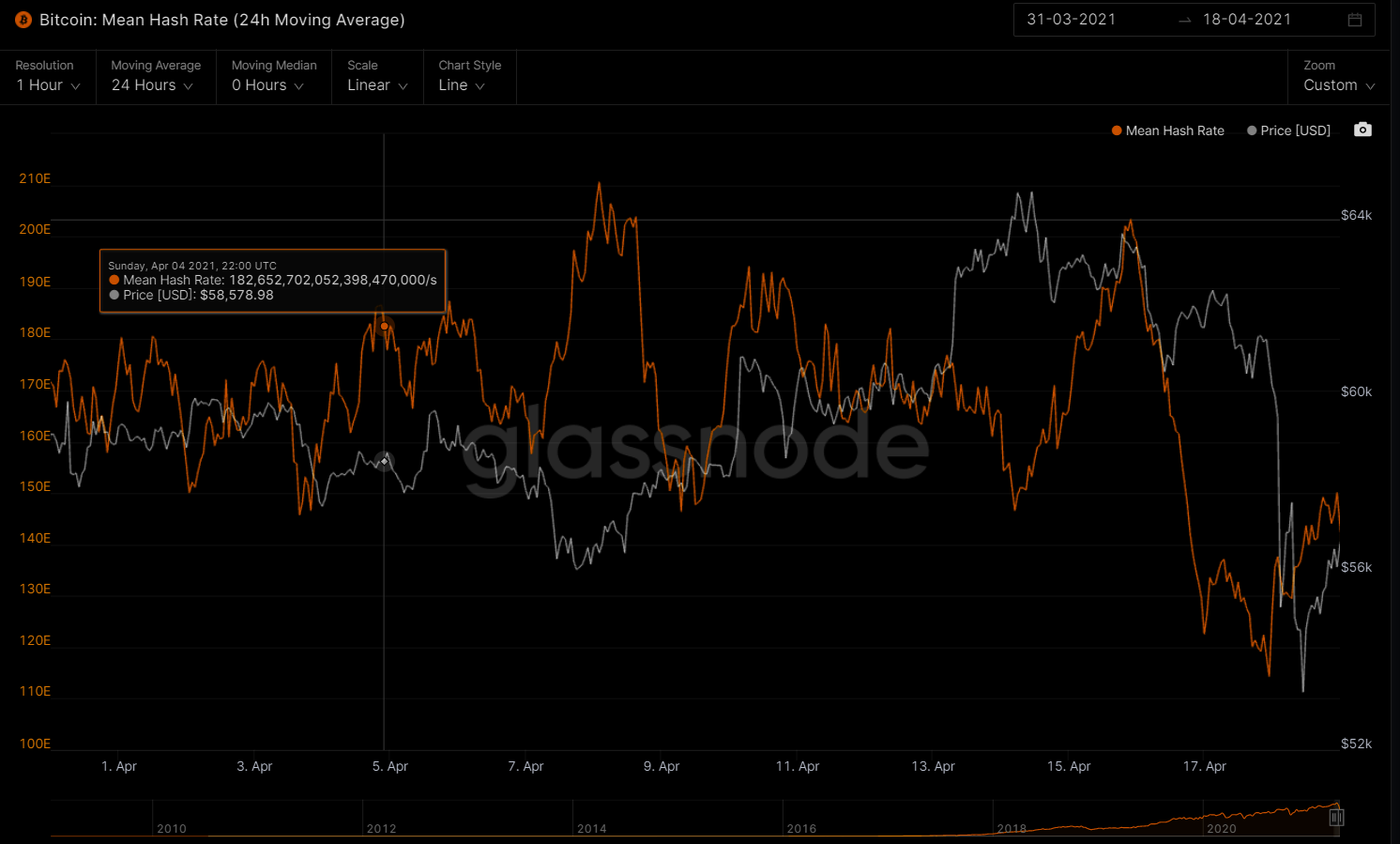 The Chinese crackdown on mining caused a short-term disruption in the network, and the hashrate dropped to record lows.