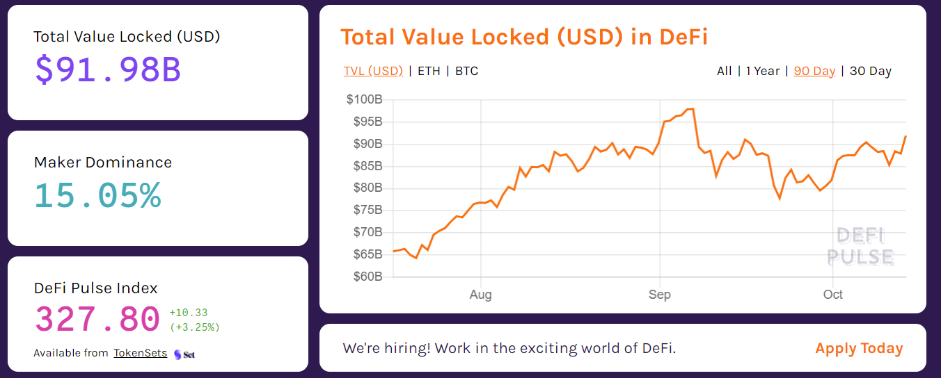 According to DeFi Pulse with more than 91 BN USD in total value locked (TVL) in Decentralized Finance (DeFi) applications and the growth of Decentralized Exchanges, we can understand how investors and people in general are moving their capital to Decentralized networks and exchanges instead of being managed by Centralized Crypto Exchanges.