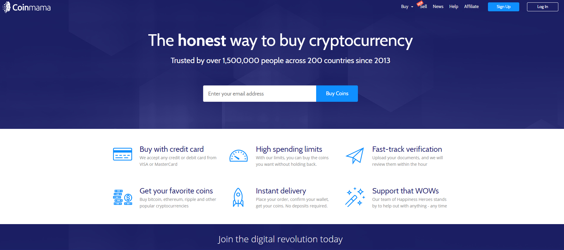 CoinMama was formed in 2013 and it has built its reputation to operate in 188 countries worldwide, including 24 US states, as a reliable, secure cryptocurrency broker with one of the fastest and more user-friendly platforms in service.
