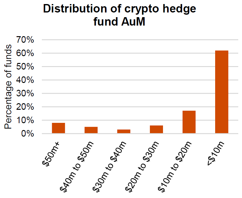 It’s also important to notice that the average value of the assets in hedge funds at launch is $3.6 million, with a median of $1.2 million, which means that the business of crypto hedge funds is currently generating income, implying they survived the low stage of the market.