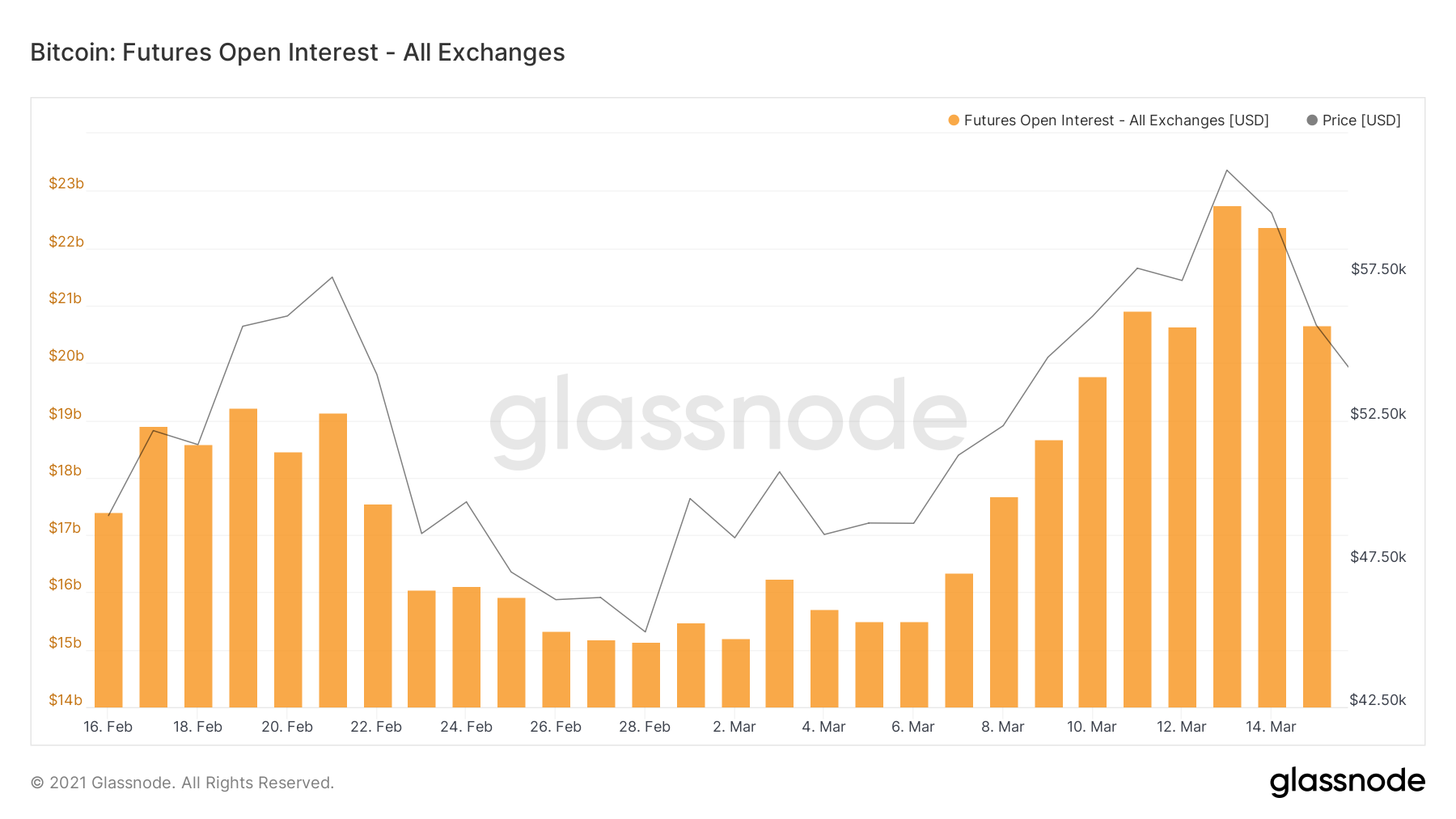 In the meantime, futures open curiosity reached a $22.5 billion record-high, inflicting traders to query how sustainable the present rally is. According to data from crypto derivatives analytics site Glassnode, bitcoin futures open interest on major retail platforms reached new all-time highs over the weekend.