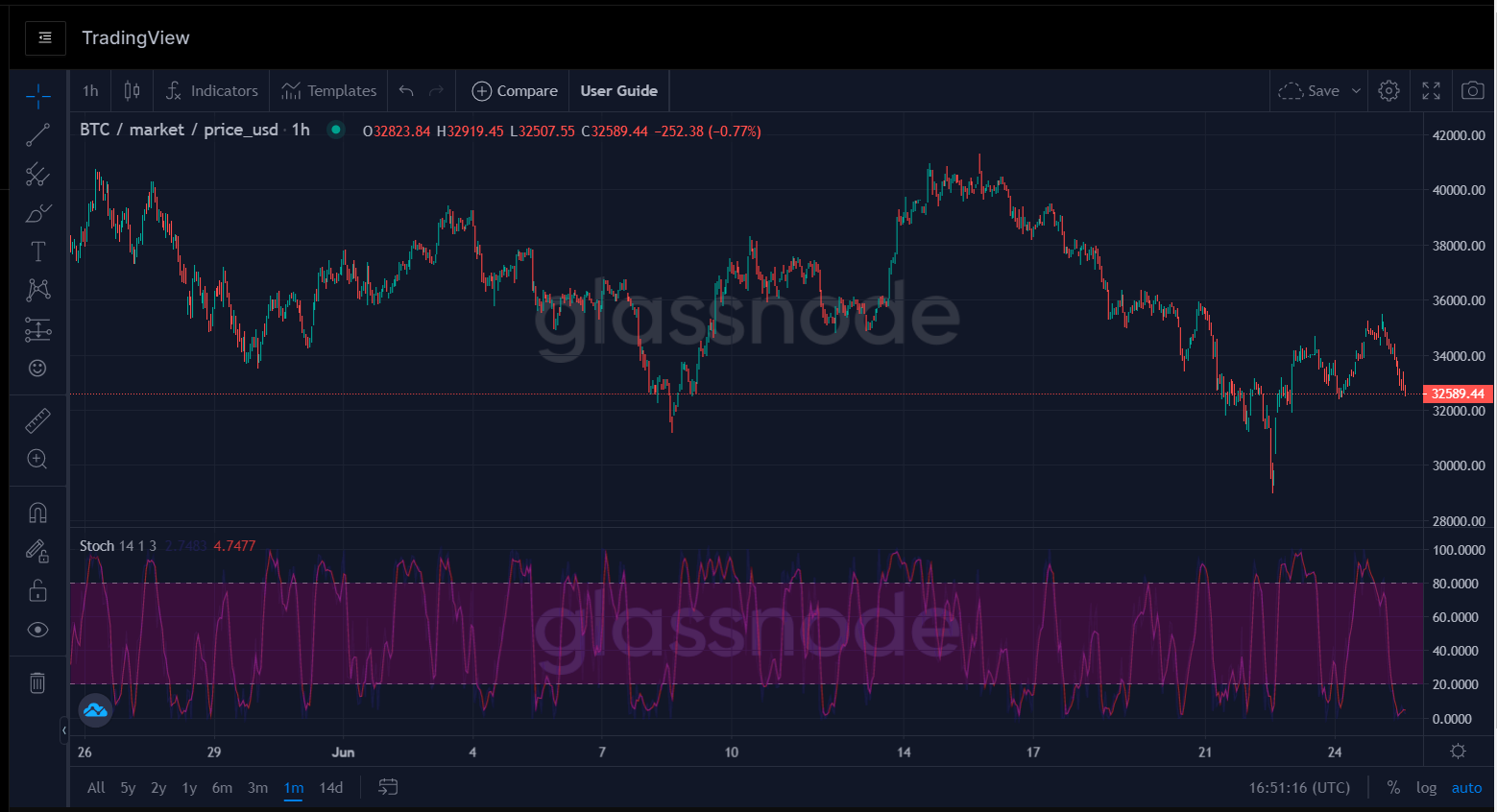 It created the bullish trend we saw reaching as mentioned an all time high of USD 63,600 per Bitcoin on 04/13 and went down dramatically to USD 34,688 on 03/25 and then to USD 31,587 on 06/21.
