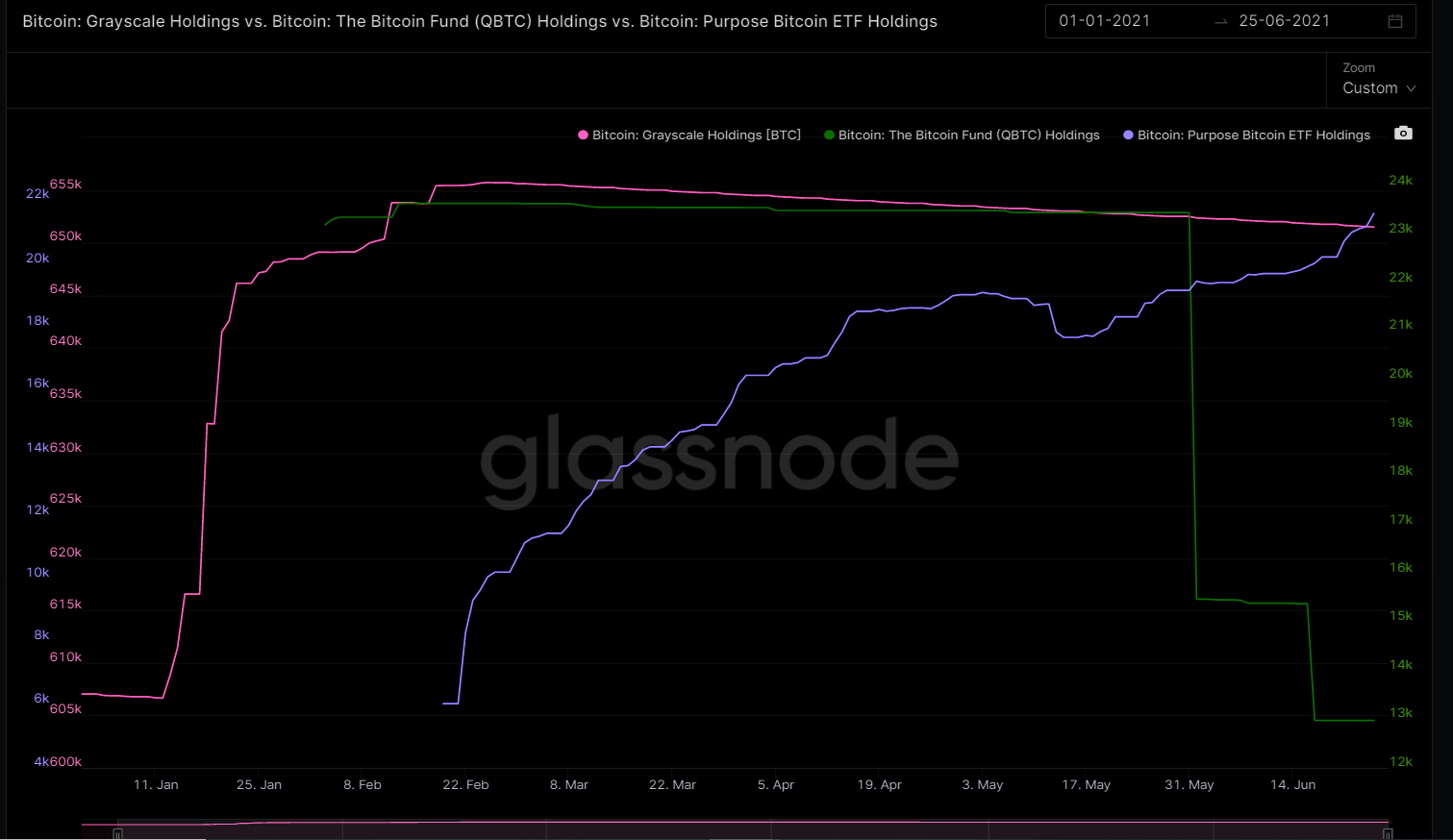 Bitcoin: Grayscale Holdings vs. Bitcoin: The Bitcoin Fund (QBTC) Holdings vs. Bitcoin: Purpose Bitcoin ETF Holdings